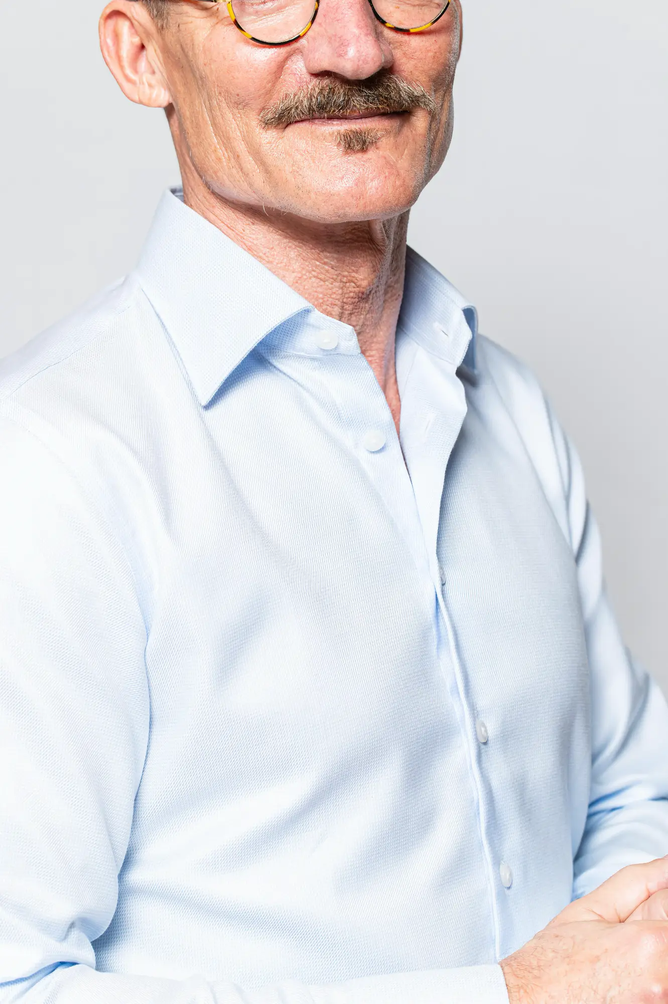Vores lyseblå skjorte kombinerer klassisk elegance med moderne pasform.